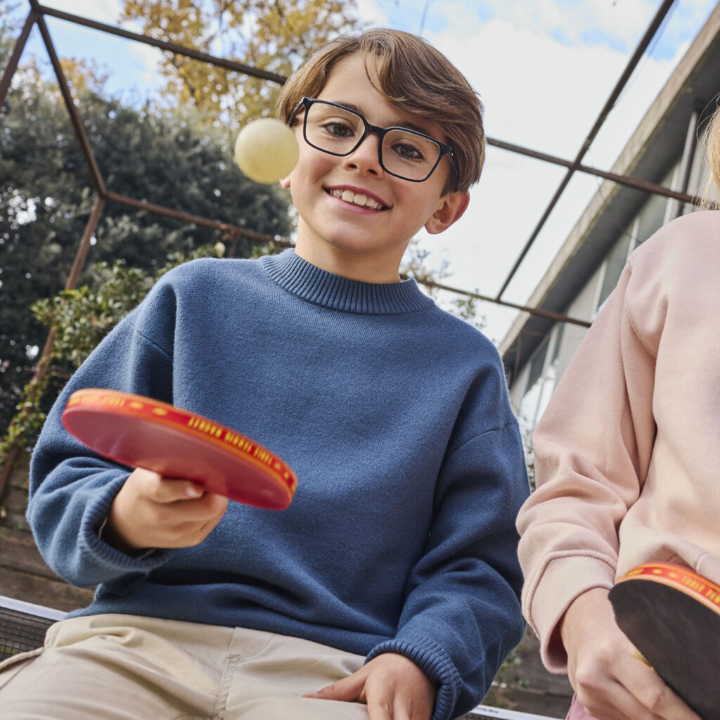 Prilagojena mladim obrazom: lahek, udoben in ergonomsko oblikovan okvir zagotavlja, da očala ostanejo na mestu tudi pri igri in gibanju.